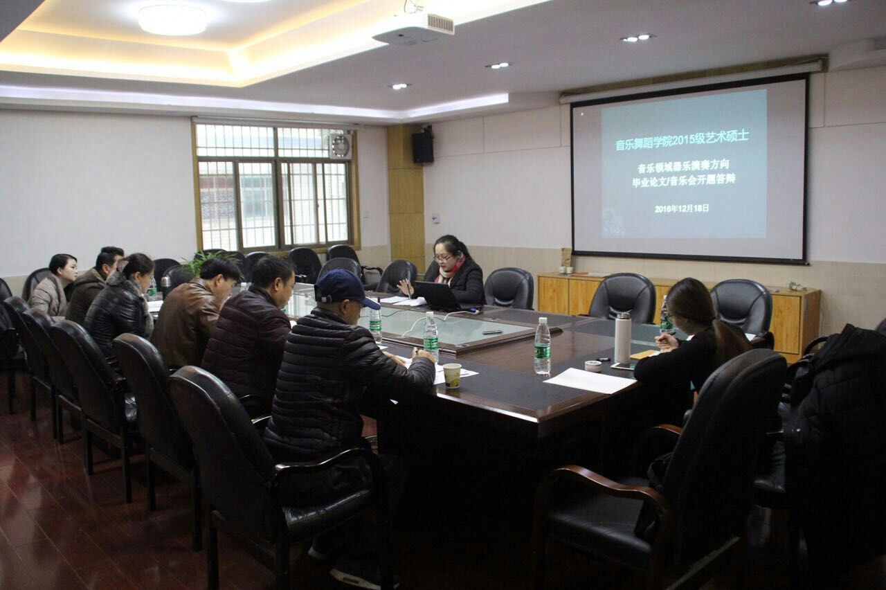 根据研究生处下发文件,国家艺术硕士教育指导委员会相关文件及公司艺术硕士毕业标准的文件要求,公司于2016年12月18日进行首届艺术硕士毕业论文/毕业专场开题答辩,以专业方向分为四组进行(器乐演奏,声乐演唱,音乐创作及舞蹈表演与舞蹈编导),各评审组由各方向导师及校外导师组成。答辩前,各方向答辩评审组组长进行了一个简短的开题答辩工作会议,上午9:00,正式开始答辩。以下为各小组答辩现场图片。