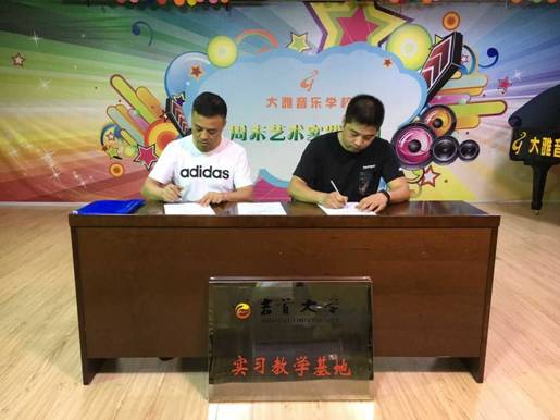 上图为bv伟德国际1946经理唐志明与大雅音乐公司负责人进行基地签约