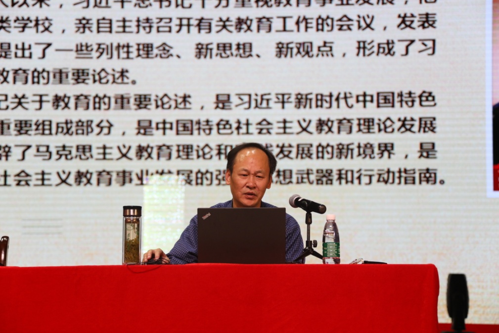 接着,戴林富教授以“学习贯彻新思想,办好人民满意的教育”为题,从“习近平总书记关于教育重要论述概述”、“习近平总书记关于教师队伍建设论述”、“贯彻落实习近平总书记关于教育论述”三个方面引导伟德bv1946官网全体师生深入学习习近平总书记关于教育重要论述。并对习近平总书记提出的新时代“四有好老师”进行了详细的解读。