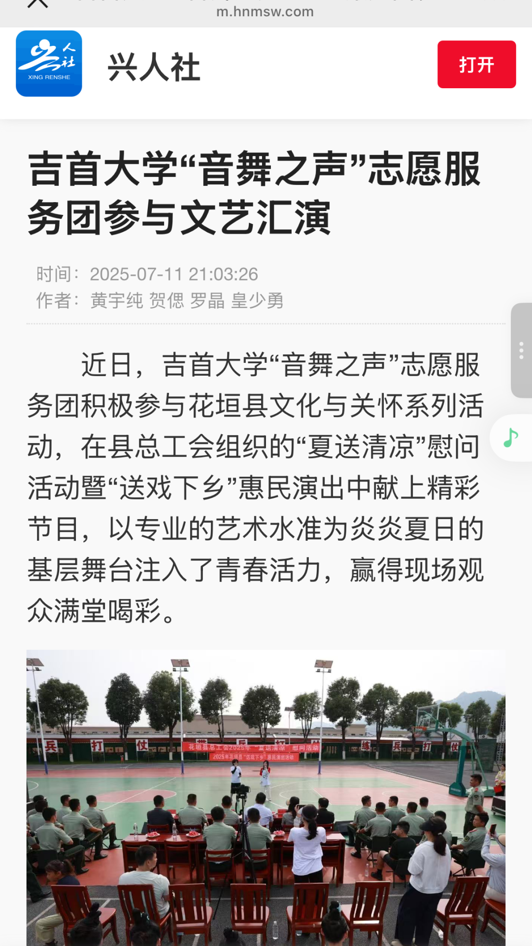 在微信视频号发布新生军训、“三下乡”、“芙蓉学子·乡村振兴”公益计划活动期间发布艺术支教、文艺汇演、主题调研等视频内容,累积浏览量4.5万。
