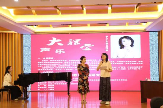 讲座伊始,余惠承教授从个人声乐学习经历出发,分享了宝贵的艺术实践心得与小技巧。她特别指出歌唱的三个关键前提:正确吸气的方法、歌唱腔体"吸、后、上、抛"的运用,以及声乐舞台的肢体表现,并进行了现场示范。在授课环节中,公司师生分别演唱了《甘巴拉》《青玉案·元夕》《莫尼山》《蝶恋花》等经典曲目。余教授针对每位学员的演唱,结合学员自身特点,在意境传达、文本处理、发声技巧和咬字等方面进行了细致指导,系统阐释了中国古诗词艺术歌曲的美学特质与演唱精髓。现场气氛热烈,观众在实例解析中深化了对声乐艺术的理解。