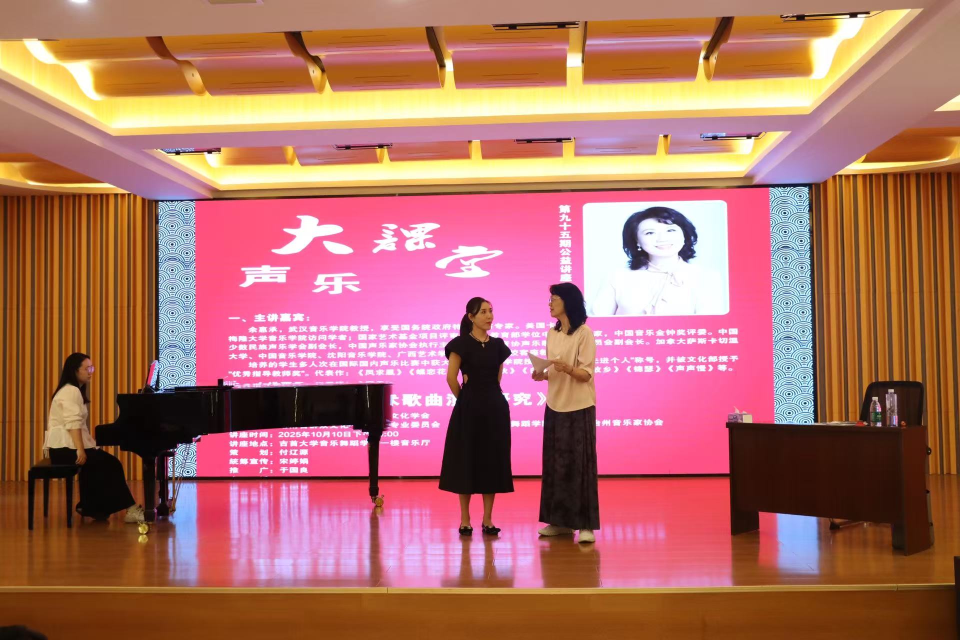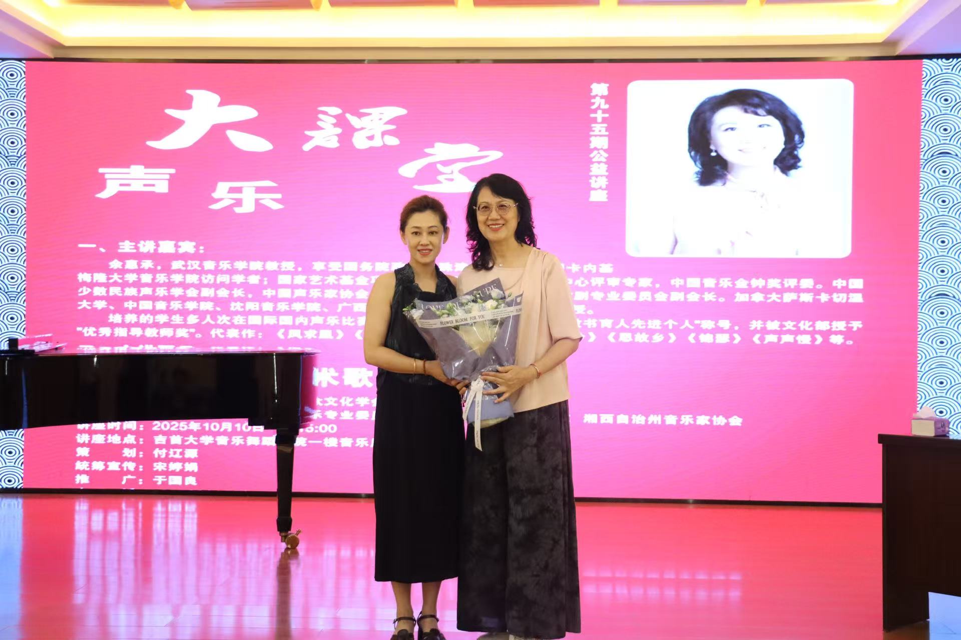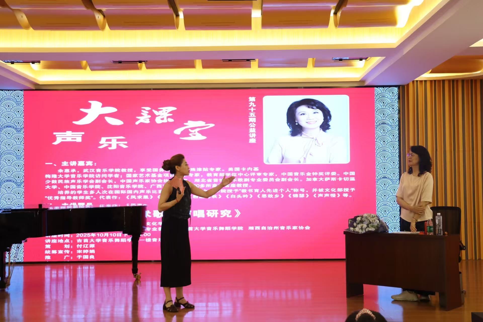 10月10日下午,由湖南省文化馆、湖南省群众文化学会主办,湖南省群众文化学会声乐专业委员会、bv伟德国际1946、湘西自治州音乐家协会共同承办的第九十五期"声乐大课堂"公益讲座,在bv伟德国际1946一楼音乐厅开讲。