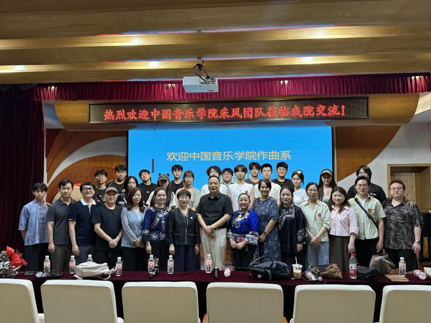 教授从历史学视角剖析了苗疆疆域与“边墙”历史,引导采风团关注苗歌、苗鼓背后深厚的历史文化底蕴,并寄语师生们“用音乐将苗族文化带向世界”。陈廷亮教授聚焦土家族音乐,通过对梯玛神歌、摆手歌的生动讲演,阐释了其文化功能与艺术价值,并对民族音乐创作实践提出见解。吴华强副教授解析了苗族服饰、语言与民歌间的内在联系,强调了苗族文化“歌舞乐一体”的共生特性。并详细阐述了东、西部苗歌的差异化发展,东部苗歌的汉苗双语演唱成为民族文化交融的生动例证。李开沛教授强调了湘西乐舞不可分割的融合性,指出苗族鼓舞与傩舞显著的仪式性特征,建议采风团队在田野调查中重点观察“乐”与“舞”的互动关系。