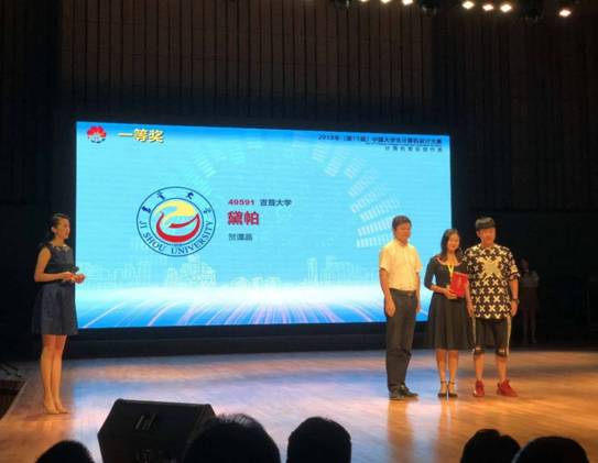 | 图为组委会为一等奖获得者贺谭晶及指导老师颁奖 |