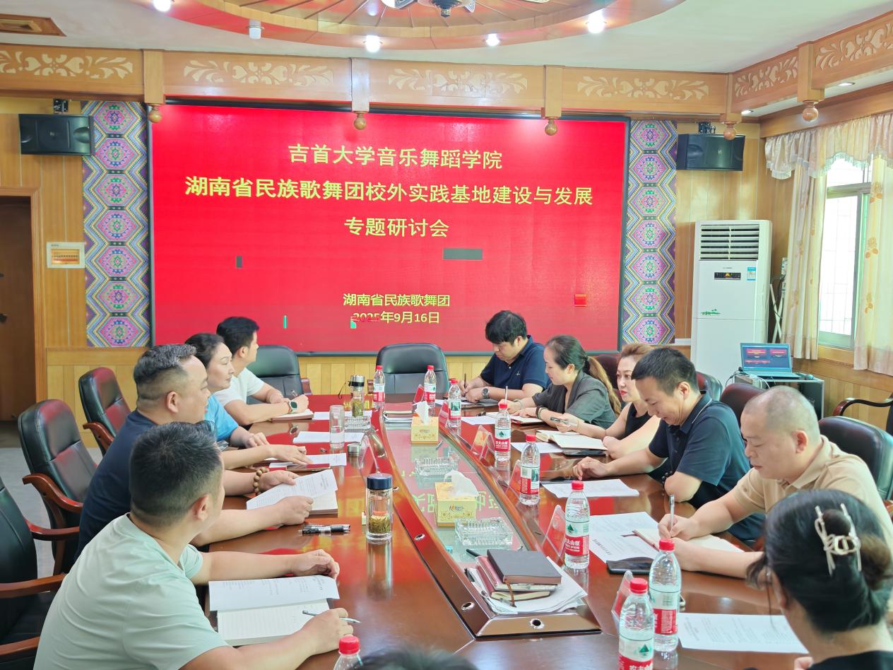 2025年9月15日下午3:00,伟德bv1946官网组织调研团队赴湖南省民族歌舞团,共同组织召开校外实践基地建设与发展专题调研会,调研团队由伟德bv1946官网教务处副处长罗家顺、bv伟德国际1946经理肖笛带队,湖南省民族歌舞团代理团长刘志勇,副团长麻晓玲等参加会议。双方围绕实践教学基地建设、人才培养模式创新、艺术创作合作等议题进行了深入研讨,旨在进一步拓展校企合作的深度与广度,共同打造集教学、实践、创作、研究于一体的高水平艺术人才培养平台。