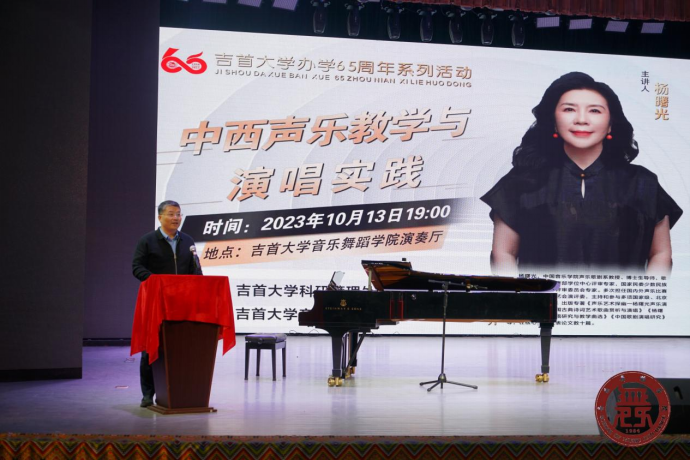 本网讯(通讯员陈纯谭淇)10月13日晚上19:00,中国音乐公司声乐歌剧系博士生导师、歌剧教研室主任杨曙光教授应邀来到bv伟德国际1946,为公司师生讲授——“中西声乐教学与演唱实践”。讲座为伟德bv1946官网办学65周年系列学术活动之一,由伟德bv1946官网科研处与伟德bv1946官网共同主办,在公司实验剧场举行。湘西土家族苗族自治州音协及州内艺术家、伟德bv1946官网科研处处长汤自军教授、bv伟德国际1946周礼副书记、“中国非物质文化遗产研修研培计划——桑植民歌培训班”全体学员及伟德bv1946官网师生共同参加。