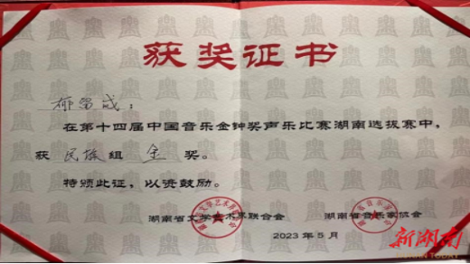 据悉,中国音乐金钟奖创办于2001年,是中共中央宣传部批准设立,由中国文联和中国音协共同主办的中国音乐界综合性专业大奖,每两年举办一届(逢单年举办),是与戏剧梅花奖、电视金鹰奖、电影金鸡奖并列的国家级艺术大奖。这是郁留成老师第二次获该项赛事全省第一名,今年10月,他将代表湖南赛区参加在成都举办的全国总决赛。