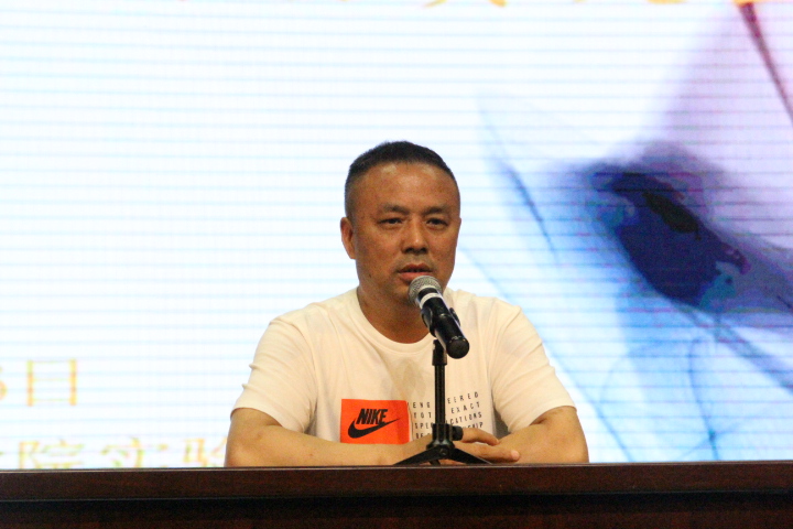 图为舞蹈学主任谭建斌宣读暑假排练工作安排