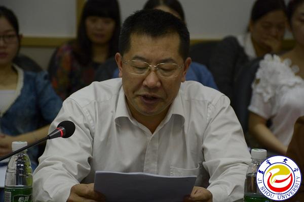 图为研究生处处长佘佐辰宣读聘任文件