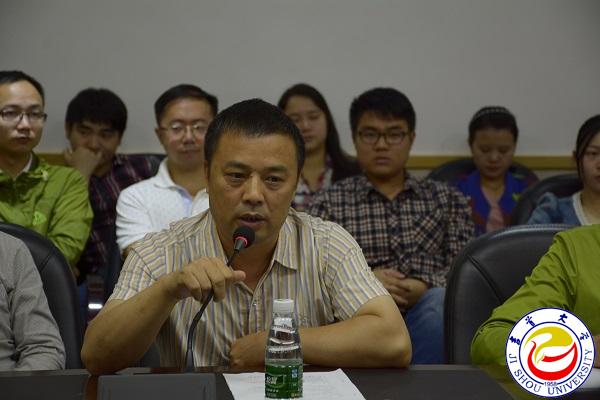 图为伟德bv1946官网经理唐志明教授介绍受聘导师基本情况