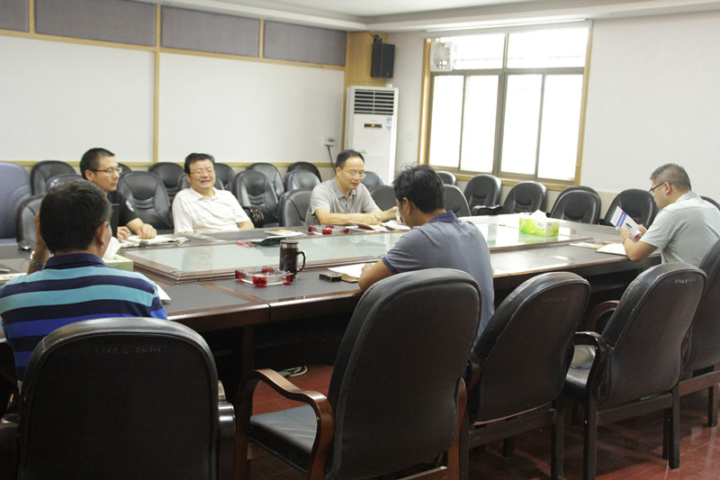 图为公司党总支书记彭业锦向冷志明副董事长汇报公司工作