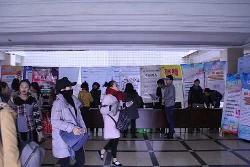 开幕式后,各用人单位转战招聘会现场,对2017届毕业生进行现场招聘。从现场了解到的情况来看,招聘会气氛良好,秩序井然,每位应聘者都手持自己精心准备好的自荐书和简历,满脸自信地穿梭于人流之中,选择有意向的岗位,积极与用人单位的招聘人员交流,主动了解用人单位的情况并投递简历。