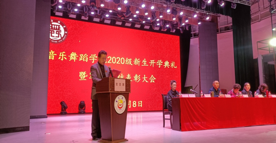 公司党委副书记高昆宣读2020级新生班主任任命文件:2020级辅导员鲁明新、音乐学一班班主任董亚龙、音乐学二班班主任程采晴、音乐学三班班主任李娅、舞蹈学一班班主任黄雨薇、舞蹈学二班班主任刘安然。