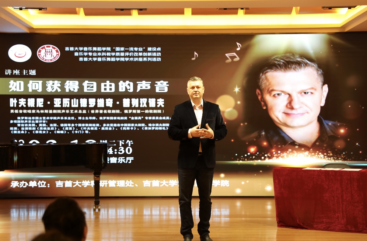 (通讯员:谢玉)“真正的歌唱,是让声音挣脱枷锁,让灵魂在共鸣中自由呼吸。”2025年3月18日下午14:30,享誉国际的俄罗斯男低音歌唱家、马林斯基剧院声乐艺术总监叶夫根尼·亚历山大罗维奇·普列汉诺夫在bv伟德国际1946一楼音乐厅掀起一场关于“声音自由”的学术风暴。