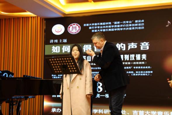 接下来,叶夫根尼教授分别从发声技巧的纠正、气息的科学运用、共鸣腔的平衡、元音的纯净度,以及音乐的情感表达等方面对数位公司声乐专业员工进行了细致入微的指导。尽管有语言差异,但其幽默的教学方式以及生动的示范,依旧让员工们在轻松愉悦的氛围中,逐渐掌握了晦涩难懂的歌唱技巧,让师生不仅体验到了一次深刻的艺术洗礼,还感受到了不同文化之间的交融与碰撞。
