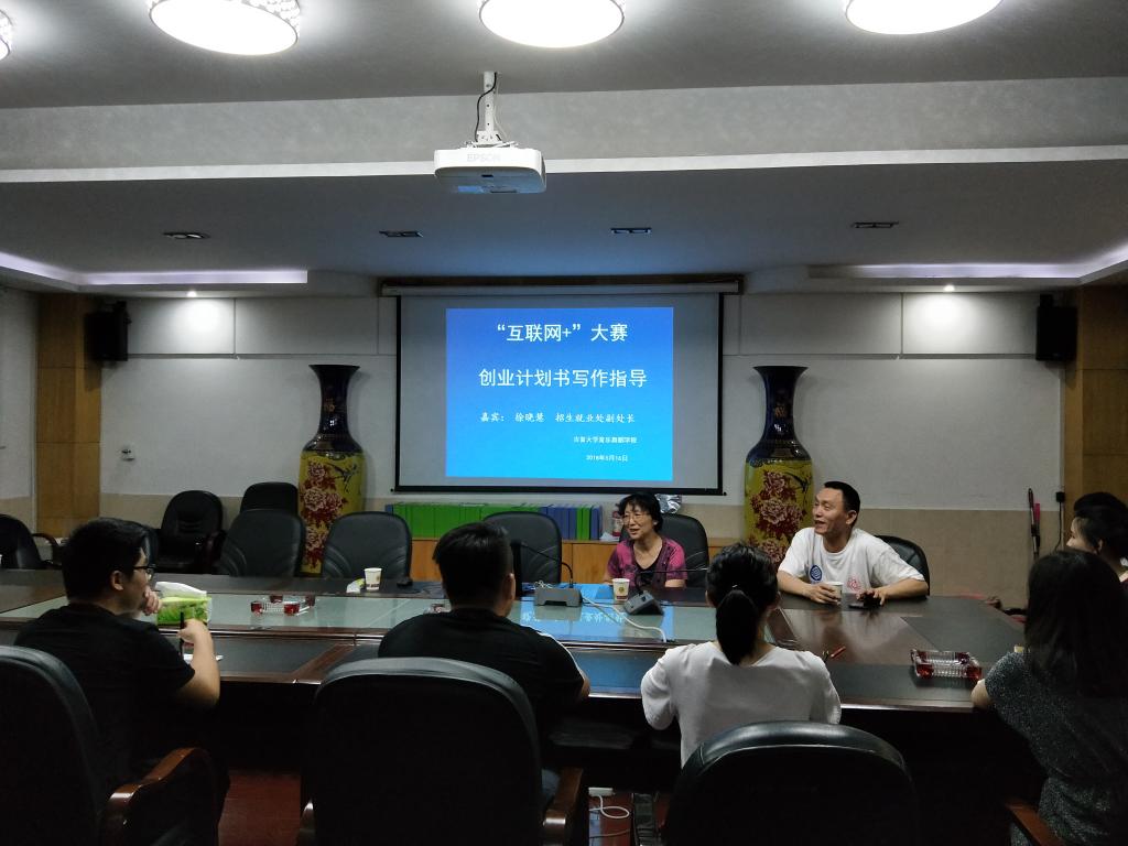 在会上,徐副处长对创新创业方面阐述自己的一些观点以及意见,并具体指导公司“互联网﹢”大赛创业计划书写作。对公司部分创业计划书的优点和缺点进行了阐述,同学耐心地听着并做着记录。