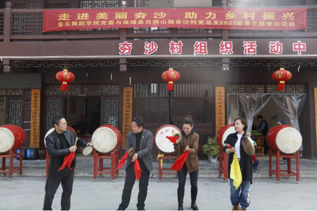 员工记者 刘巧华 王智鹏 袁玲娜)3月5日是学雷锋日,伟德bv1946官网教工党支部结合自身专业特色,专程赴保靖县吕洞山镇夯沙村开展“送文艺下乡”活动,用文艺作品的形式宣讲党的二十大精神。
