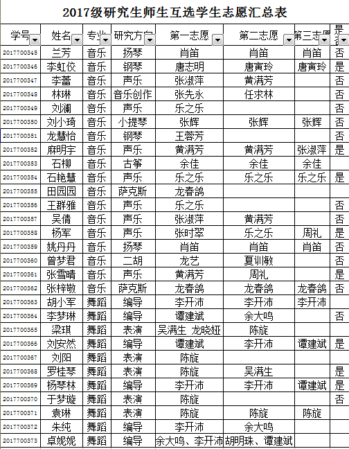 2017级艺术硕士师生双选员工志愿汇总结果公示