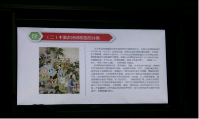 第一部分由主持人何丽讲解中国古诗词歌曲的溯源及发展、中国古诗词歌曲的分类