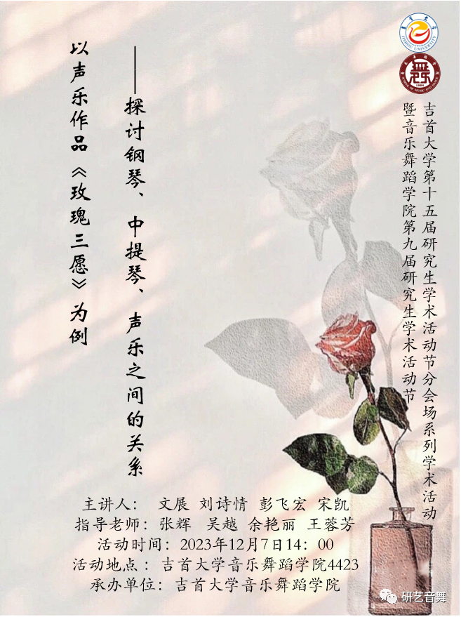 艺术沙龙 | 以声乐作品《玫瑰三愿》为例——探讨钢琴、中提琴、声乐之间的关系