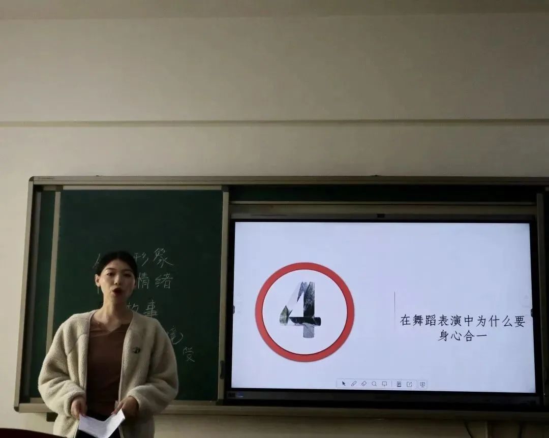 王倩同学从“身”“心”关系中舞者存在的三种可能性中,由“心”至“身”,以舞蹈剧目中舞者所呈现的状态来进行分析讲解论证。