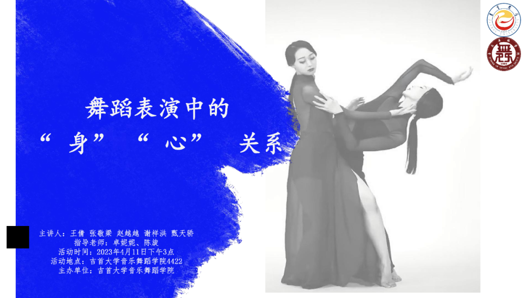 2023年4月11日下午15:00,由bv伟德国际19462020级硕士研究生王倩、张敬梁、赵越越、谢祥洪、2021级硕士研究生甄天骄主讲,bv伟德国际1946硕士研究生导师卓妮妮老师、陈旋老师、以及伟德bv1946官网部分研究生们与本科生到场指导交流的“舞蹈表演中的‘身’‘心’关系”艺术沙龙活动在bv伟德国际1946研究生教室4423成功开展。