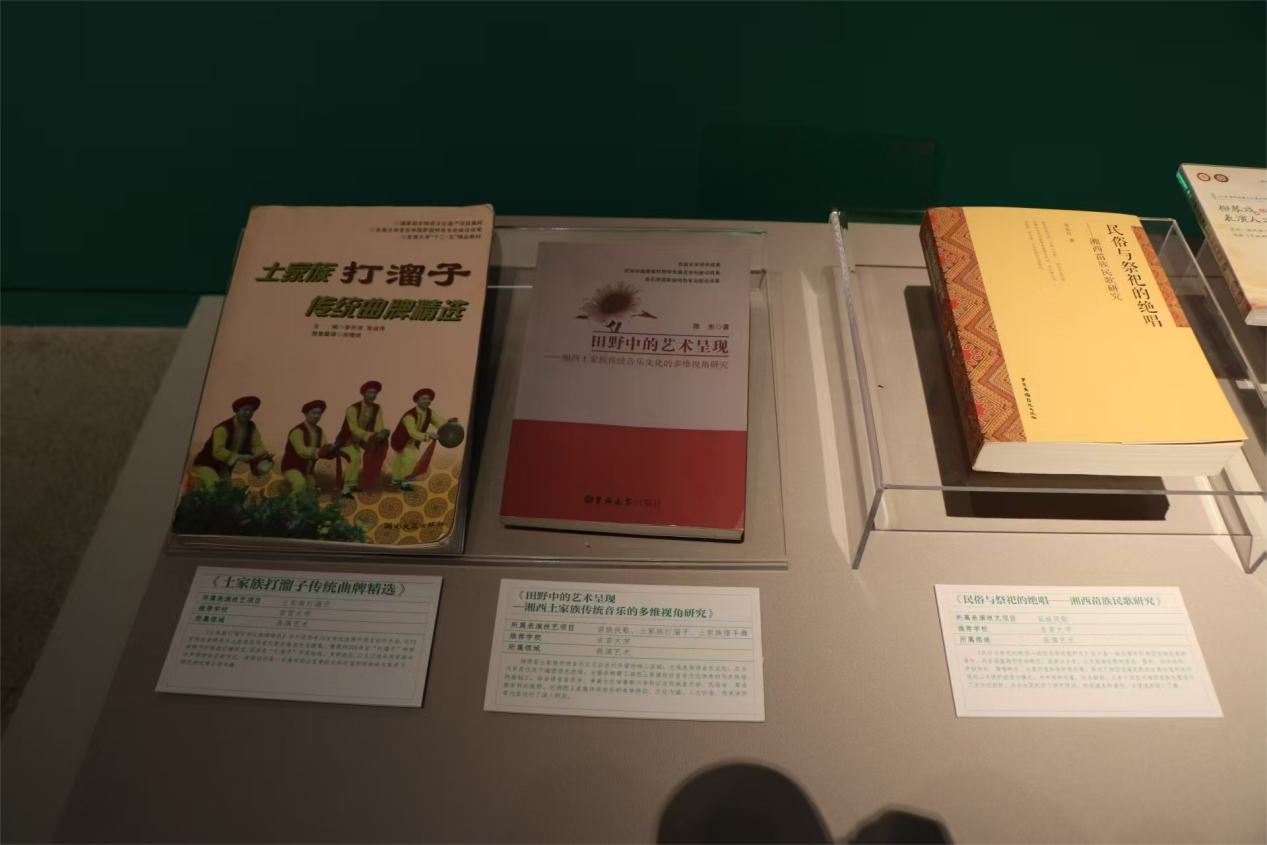 学术成果类同样亮点纷呈,选送的著作《土家族打溜子传统曲牌精选》由田隆信、李开沛等编著,从田隆信先生搜集整理的200余首“打溜子”传统曲牌里精选70首汇编,涵盖多地域、多流派,字谱与分声部结合的记谱方式,使其成为研究土家音乐的珍贵史料。陈东所著《田野中的艺术呈现——湘西土家族传统音乐的多维视角研究》,梳理土家音乐传承脉络,融合语言音乐学、民俗学等多学科,深入剖析其本体特征与文化价值;邹永红的《民俗与祭祀的绝唱——湘西苗族民歌研究》,全面解读苗歌源流、结构等,附录传承谱系与谱例,为苗歌保护传承筑牢学术根基。